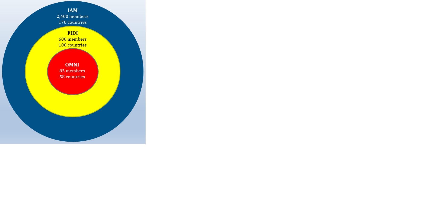 Onderstaande afbeelding geeft weer hoe de internationale verhuisnetwerken zijn ingericht, waarbij de eisen aan de leden toenemen. Van IAM naar FIDI en tenslotte: OMNI.